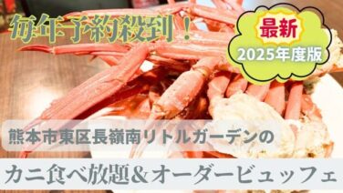 熊本市東区長嶺南『リトルガーデン』の冬の美味しい風物詩『カニ食べ放題&オーダーバイキング』が今年も11月からスタート。今年の開催期間は3ヶ月と短くなってます。2025年度の開催日や料金などを紹介。毎年予約が殺到する大人気の企画のため、早めの予約がおすすめ。